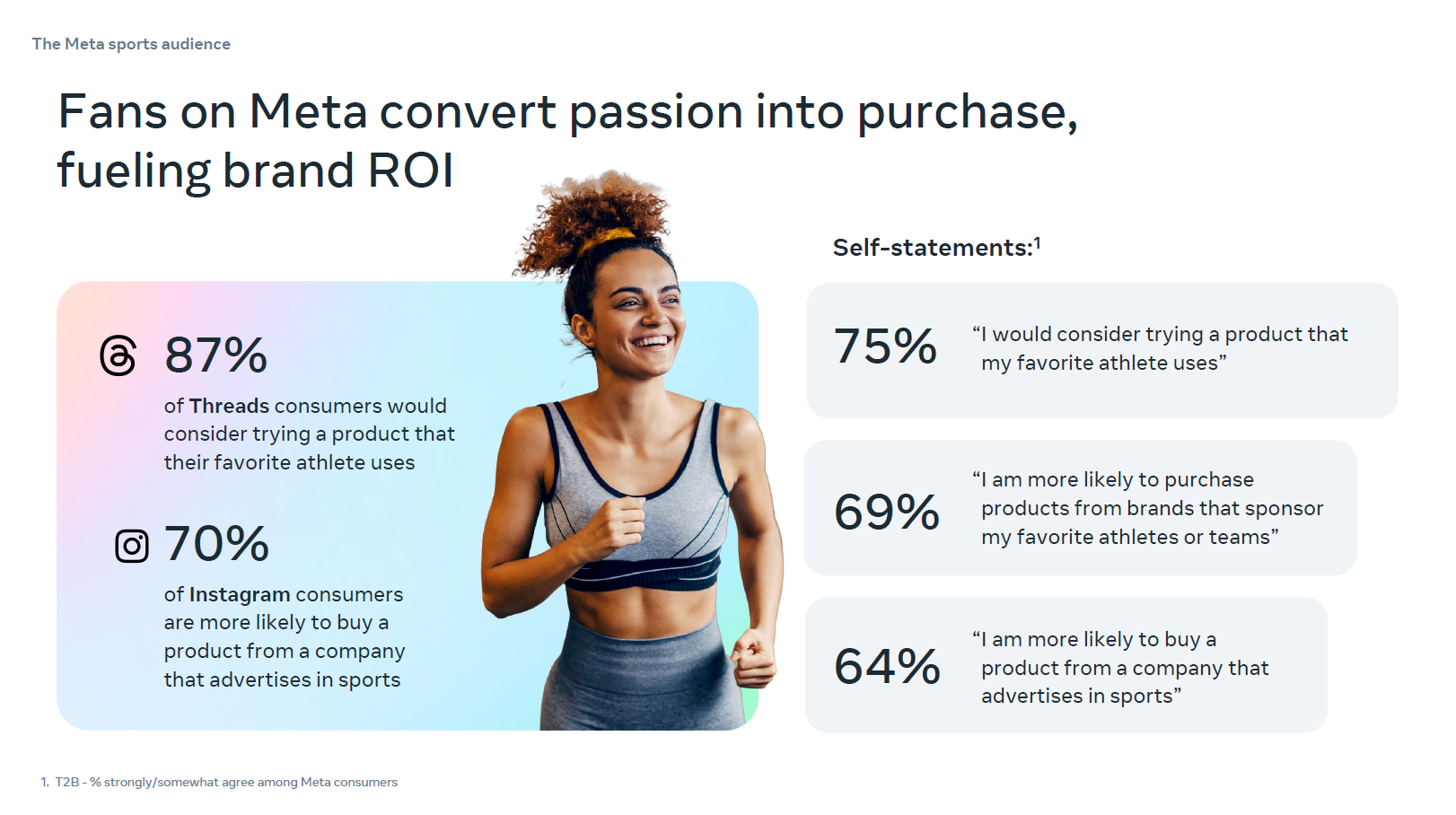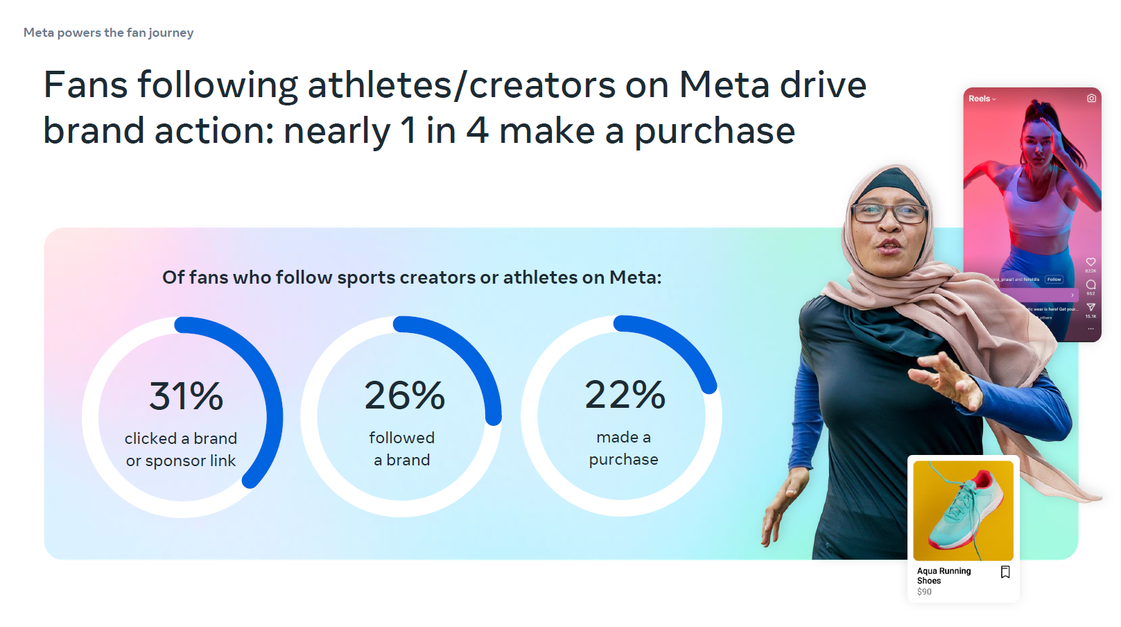 數據顯示,41% 的 Meta 運動迷在過去一個月內曾在 Instagram 上看到體育推廣內容,91% 的粉絲會立即採取行動,如分享、按讚或推廣這些內容。由此可見,Instagram 是品牌推廣新產品、傳播口碑的理想平台。品牌可與運動領域相關 KOL 或愛好者合作,在 Instagram 上發布真實體驗與相關內容,提升產品在運動熱潮中的曝光度,吸引更多粉絲,推動品牌知名度與產品銷售增長。此外,Threads 亦是運動粉絲交流的活躍平台,品牌可針對這兩個平台設計專屬社群活動、互動問答等內容,增強粉絲參與度。